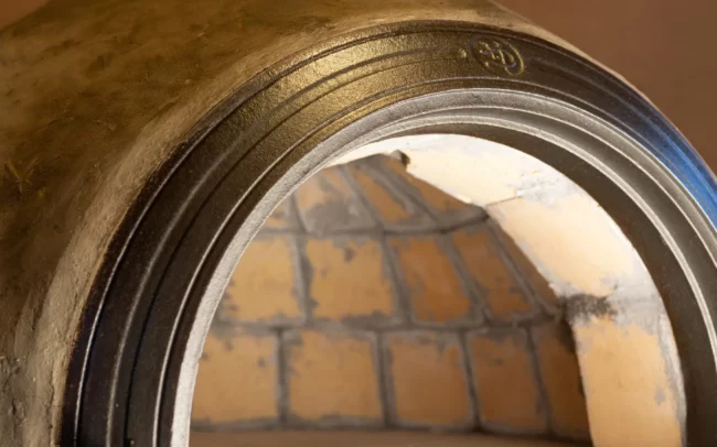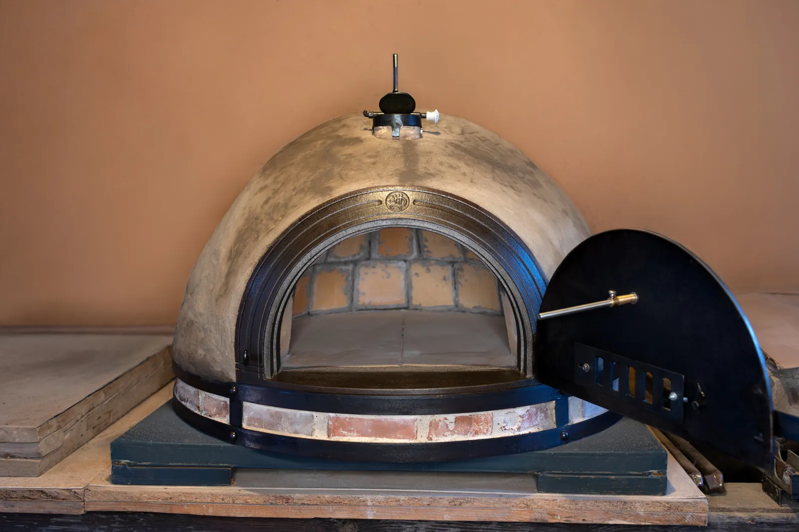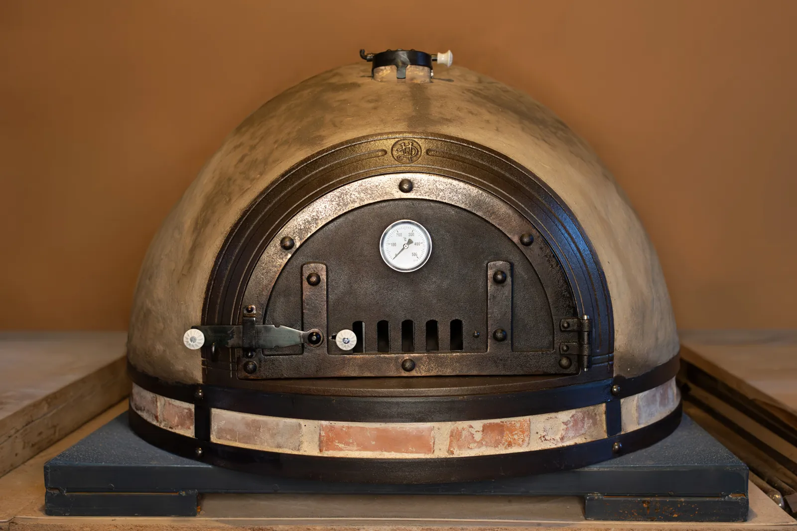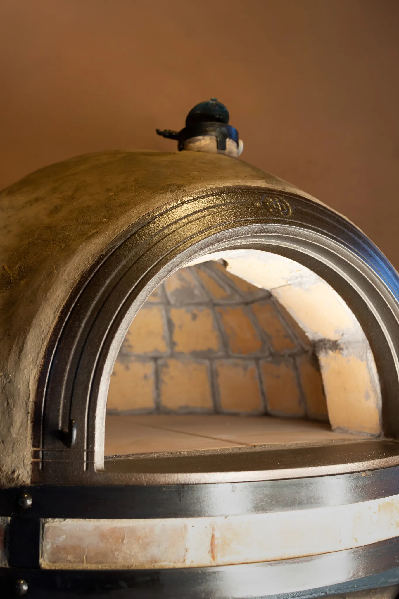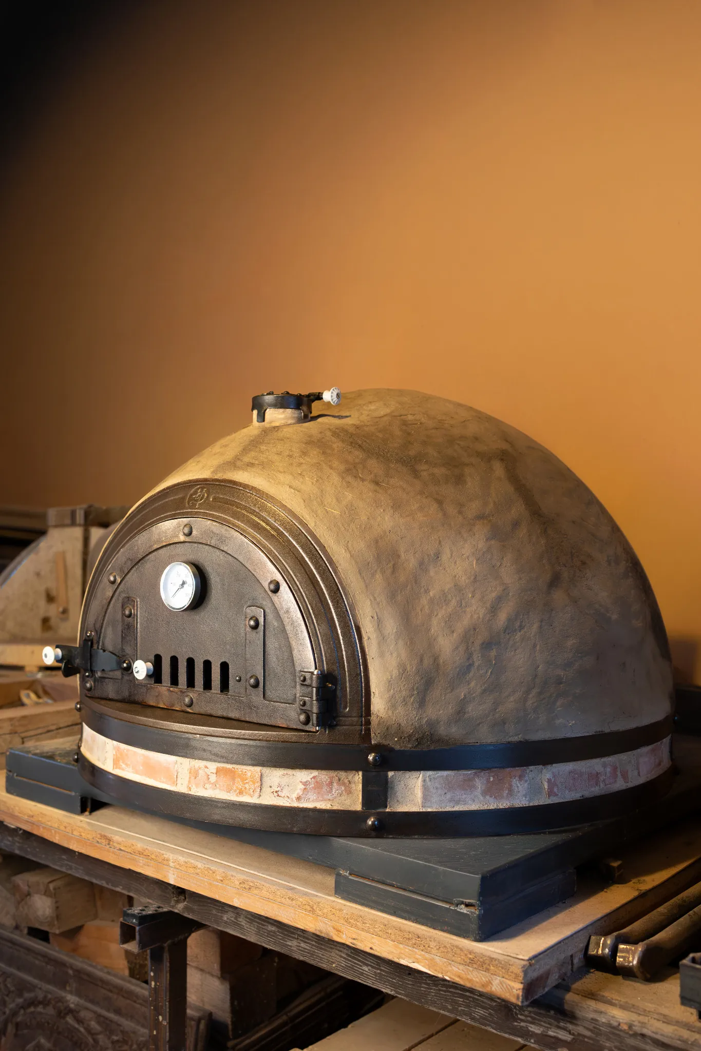 z přírodních materiálů – jílu, hlíny, slámy, křemičitého písku, vodního skla a italských keramických desek, které jsou certifikované pro styk s potravinami.